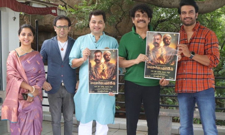 Telugu superstar Nagarjuna recently unveiled a new poster of the Marathi trilingual film 'Har Har Mahadev' in Hyderabad.