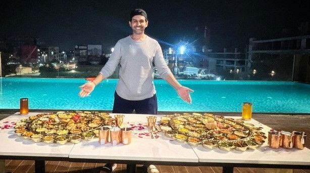 Foodie Kartik Aaryan poses with massive Gujarati thalis
