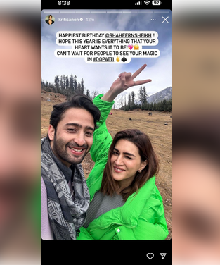 Kriti took to her Instagram stories, where she shared a picture with Shaheer from what seems like the film set. In the picture, the two are looking into the camera as they pose for a selfie and smile.