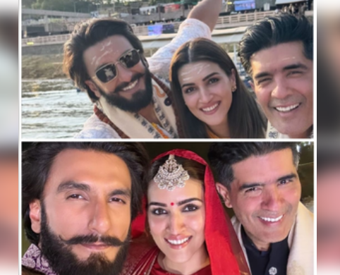 Kriti took to the Stories section of her Instagram and shared a picture with Ranveer and her BFF Manish Malhotra, who has been her close friend since her modelling days.