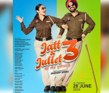Actors Diljit Dosanjh and Neeru Bajwa's upcoming film 'Jatt & Juliet 3' is set to hit the big screen worldwide on June 28.