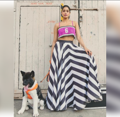 Taking to Instagram, Janhvi posted a series of photos and videos featuring her posing with her pet dog, 'Saitama'.