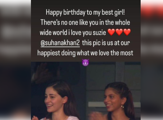 As Suhana Khan, daughter of Bollywood superstar Shah Rukh Khan, turned 24 on Wednesday, her actress-best friend Ananya Panday penned a note to wish her “best girl.”