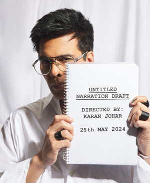 Taking to Instagram, Karan shared a picture wearing a white shirt, holding a draft that reads: "Untitled narration draft... Directed by Karan Johar May 25."