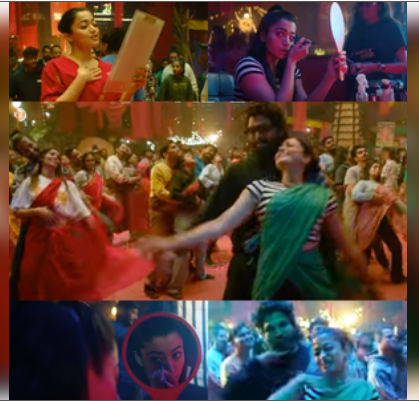 The video gives a glimpse into actual sets of the film with a palpable chemistry between Allu and Rashmika. Director Sukumar can also be seen enjoying shooting this song and dancing to the choreographer Ganesh Acharya’s notes with rest of the cast and crew.