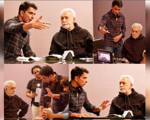 The pictures are from a script reading session with Naseeruddin Shah. Sonu wrote in the caption, "Welcome on board Naseer sir. Directing someone I have admired all my life was so special. You will be proud of FATEH sir.”