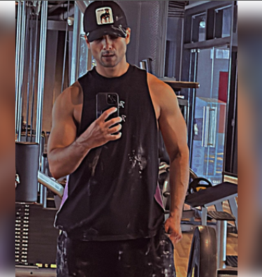 Shahid posted the picture on Instagram, where he is seen flexing his muscles, dressed in a black sleeveless T-shirt, paired with pants and a baseball cap.