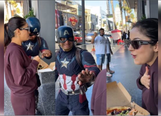 Shehnaaz shared a reel on Instagram from her vacation in the US. In the clip, she is seen holding pizza. Suddenly a man appeared in a Captain America costume and funnily tried taking a slice. The actress got startled, and the person apologised and walked away with a laugh.