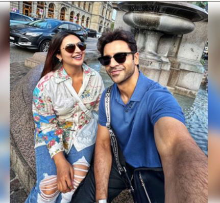 The clip further shows the couple walking on the streets of a European country, with Divyanka saying, "Mere pati ne mujhe bhookha rakha hai tab se.. dekho mai kitni sookh gayi hun." (My husband has kept me hungry... look how thin I have become).