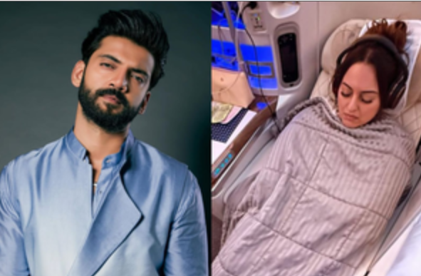 Zaheer took to Instagram, where he shared a picture of the two flying on an airplane. In the image, Sonakshi could be seen all cuddled up in a blanket with headphones on and sleeping in the business class of the flight.