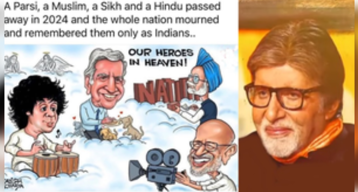 The caption of the post read: “A Parsi, a Muslim, a Sikh, and a Hindu passed away in 2024, and the entire nation mourned them, remembering them only as Indians.”