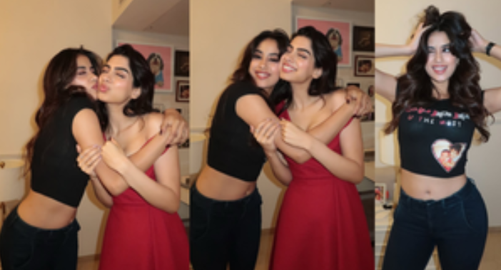 On Thursday, Janhvi shared a couple of photos on her Instagram showing the two sisters sharing a warm hug and posing together. The 'Bawaal' actress sported a black crop top with “Loveyapa” written on it, which also featured a childhood photo of Janhvi and Khushi.