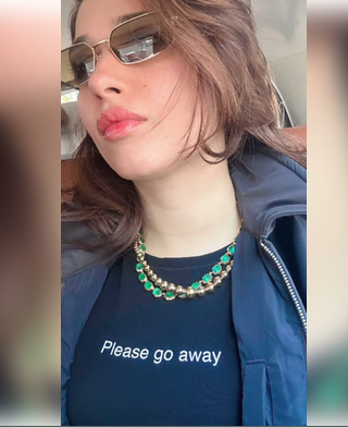 Tamannaah took to her Instagram stories section, where she shared a selfie, where she is seen making a slightly frowning face. The focus is on the T-shirt she is wearing which has “Please Go Away” written on it.