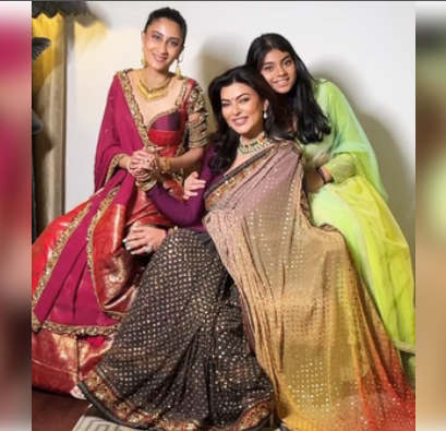 Sushmita took to her Instagram, where she shared pictures of her daughters looking gorgeous in lehengas by Neeta Lulla. She also shared a video featuring the mother and the daughters.