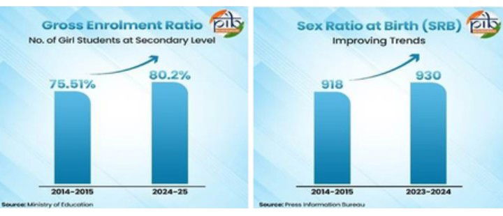 Furthermore, the Gross Enrolment Ratio (GER) for girls at the secondary level reached 80.2 per cent in 2024-25.
