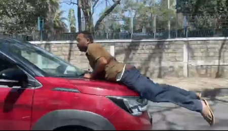 At that point, the driver allegedly attempted to speed away. As Nanjunda was standing in front of the car, he jumped onto the bonnet fearing for his life and held on to the windshield wipers. Despite his pleas and screams to stop, the accused allegedly drove from CB Road Junction towards ASC Centre College with Nanjunda lying on the bonnet.