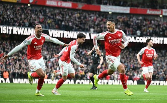 Saliba opened the scoring in the 21st minute, flicking the ball home with the help of a deflection, and Timber restored Arsenal's lead in the 66th with a header from another corner.
