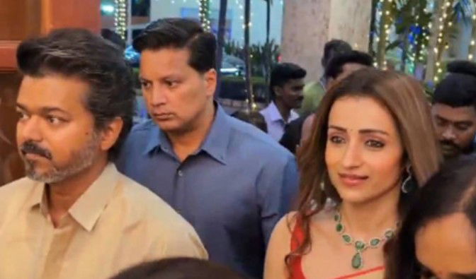 A video clip of the actor and the actress arriving together and greeting the newly wed couple has now gone viral on the Internet. The video clip triggered a major debate between netizens over Vijay's decision to attend the wedding reception with Trisha as it comes at a time when Vijay's wife Sankgeetha Vijay has filed a petition seeking divorce from the actor in the Chengalpattu District court.