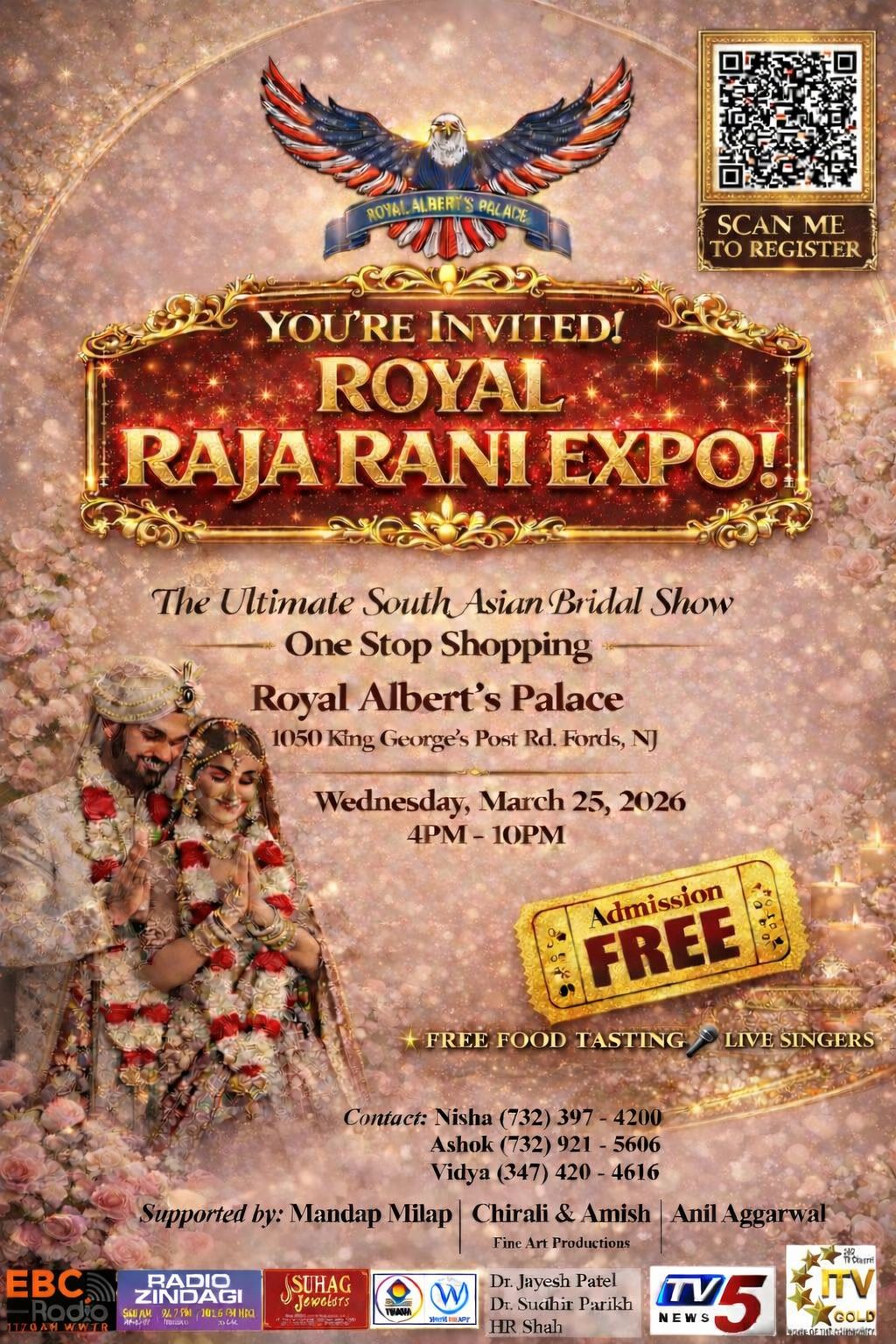 Taking place on Wednesday, March 25, 2026, from 4 PM to 10 PM at Royal Albert’s Palace in Fords, NJ, this highly anticipated event brings together the finest vendors, live singers, and free food tasting under one roof for an unforgettable evening; creating a vibrant and engaging atmosphere for families, couples, and friends - all free admission.