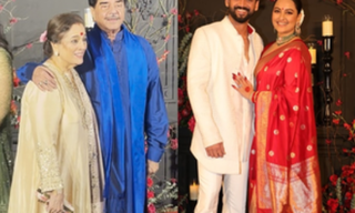 With the legal formalities for their civil marriage completed and the after party picking up pace on Sunday night, newly-wed Sonakshi Sinha, looking resplendent in a custom red, 'chand boota' brocade Raw Mango sari, and sporting a prominent sindoor, posed for the paparazzi with her husband, Zaheer Iqbal....