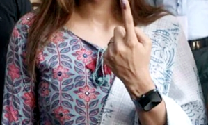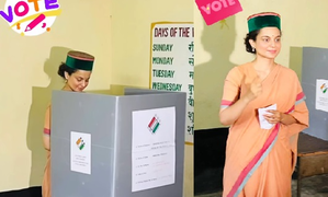 Actress Kangana Ranaut, the BJP candidate from Himachal Pradesh's Mandi constituency, flaunted her inked finger after casting her vote for the ...