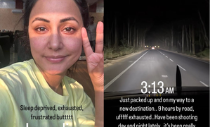 Actress Hina Khan has shared that she is sleep-deprived and exhausted due to work but asserts that she is still "alive."...